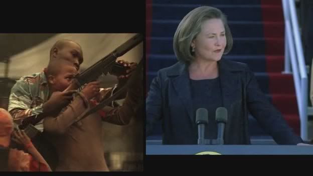 Во-первых, “24: Redemption” – явный бальзам на душу Хилари Клинтон и наглядное доказательство того, что её нынешний проигрыш Обаме всего лишь временная неудача. Здесь президентом наконец-то выбирают женщину. Во-вторых, это не самостоятельное произведение или попытка проверить успешный сериал в полном метре, а связующее звено между 6 и 7 сезонами: кроме собственно Бауэра из знакомых лиц здесь только сдающий полномочия президент Дэниелс (Пауэрс Бут) и его помощник Том Леннокс (Питер МакНикол) – действующие персонажи 6-й части. С другой стороны, это вполне себе слепок в миниатюре схемы сериала в целом – за две серии (и два часа в режиме real-time соответственно) найдётся место и заговору, и предательству, и перестрелкам, и жертвам для драматизма. Если первые полчаса представляют собой нечто среднее между “Кровавым алмазом” и “Слезами солнца” - не самая увлекательная смесь, если честно, - то потом Бауэр наконец берётся за пистолет и привычно демонстрирует, что один в поле ещё какой воин. По крайней мере, половина трупов из насчитанных 24 на счету Джека (хоть большое упущение, что так и не был взорван какой-нибудь ядерный боезаряд). И да – он опять отдувается за всех: пока Джек рискует своей жизнью, посольство реагирует на действия повстанцев в привычной манере “вы тут как-нибудь сами, а мы эвакуируемся” (см. фильм “Отель «Руанда»”). Злобного африканского полковника естественно играет Тони Тодд (кто ж ещё, если не он), мельком показывают Джона Войта, - в общем, фигуры расставлены и всё готово к началу нового сезона. А Обаме давно пора предложить Киферу Сазерленду какую-нибудь должность в спецслужбах, я считаю.